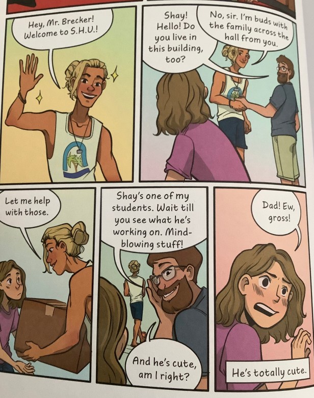 The other main focus is Addie’s introduction to virtual reality (VR) & learning how to responsibly use it and find innovative ways to help others through it. At first, she enjoys the escape & neglects her only friend, lying to him to try to get more time alone in VR. The good news is that she doesn’t hide her VR use from her dad, who is a VR researcher & enthusiast.