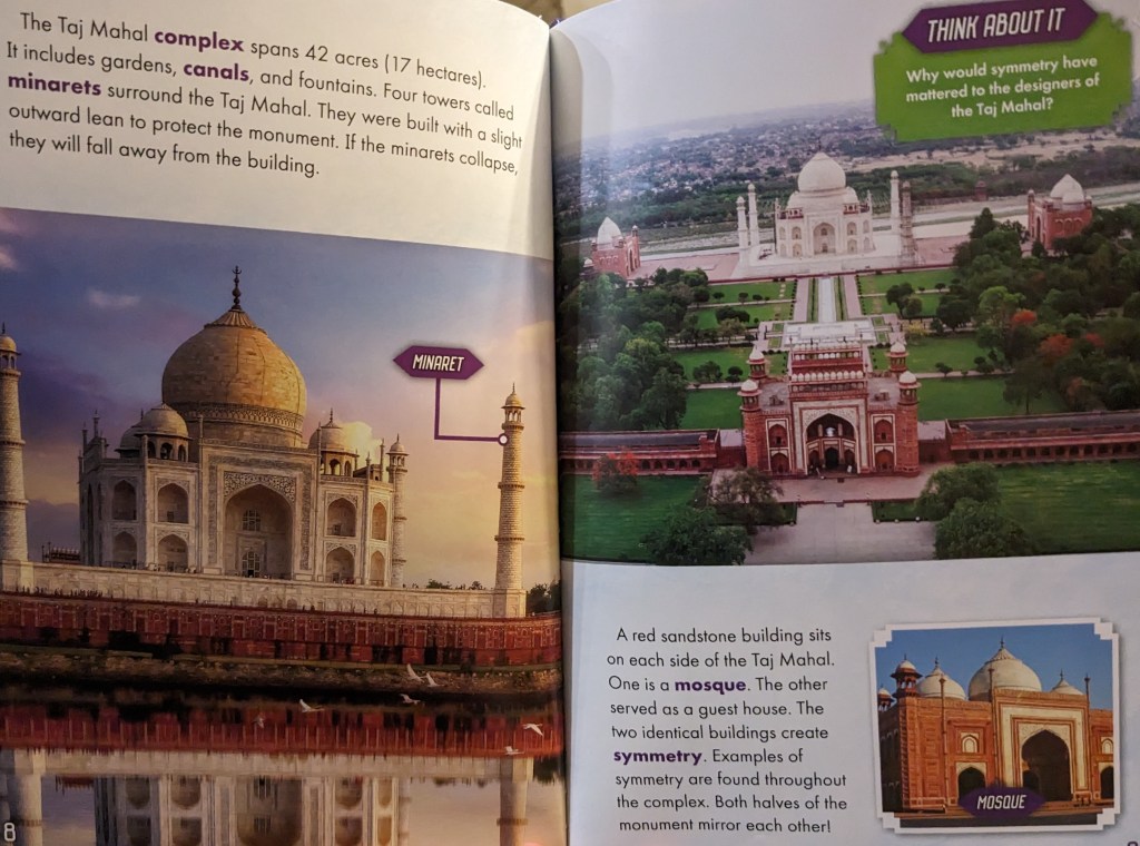 The information is fair and doesn’t seem to have a political or religious agenda. There is mention of the toombs that lie within, but no mystic references. There is mention of a mosque, but no reference to worship. I especially liked references to symmetry, restoration, and physics (the tall towers have outward lean so as to not knock the main building if they fall.
