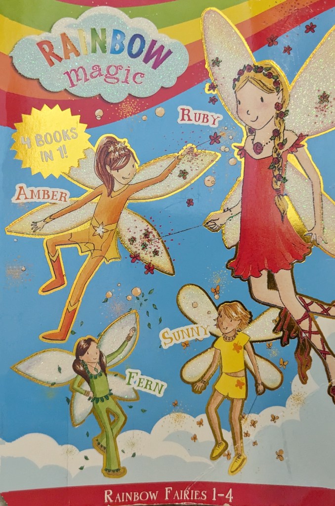 This is just not my favorite among the Rainbow Magic books I’ve read, which is unfortunate because it is the first book in the series and gives the background for why Jack Frost, the mischief-maker, is upset with the fairies.