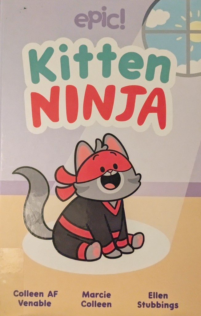 A loveable kitten dressed in ninja gear faces three silly “villains:” including a pesky spot of light, a ball of yarn, and a thick snow.