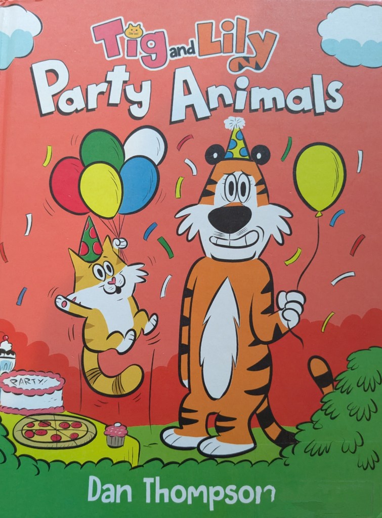An extroverted cat and a hesitant tiger throw a party. The tiger struggles to be excited about the party and to do her job, which is to invite neighbors without scaring them away.