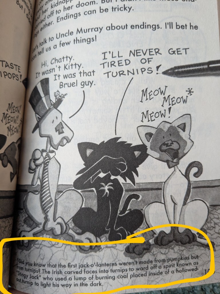 - Evil Spirits. Unfortunately a footnote talks about the origins of Jack-o’-lanterns. See image below.
