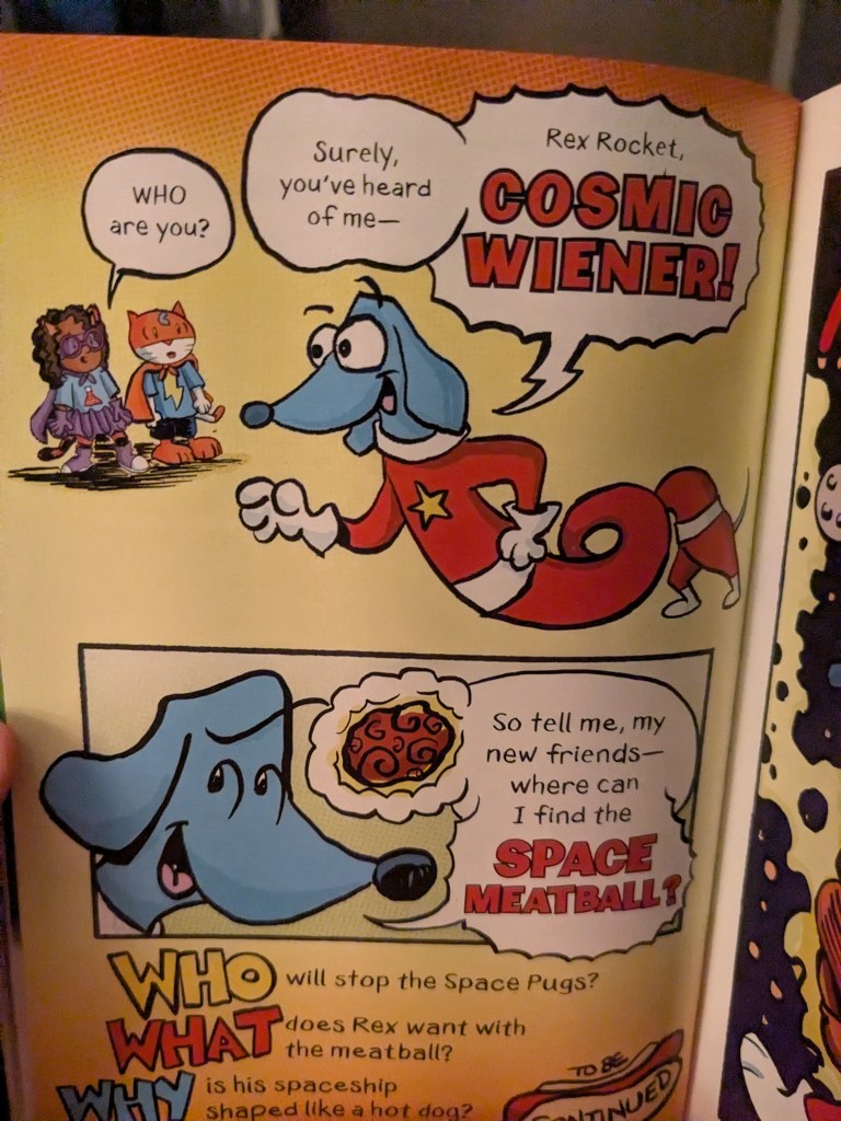 - Weiner jokes maybe? There is a weiner dog that says things about weiners that an immature reader may take the wrong way or a naive reader may repeat without realizing penis innuendos. So I just plan to have a mild conversation with my kid about not making jokes about weiners. I’ve included images below so you can decide for yourself. They seem pretty innocent.