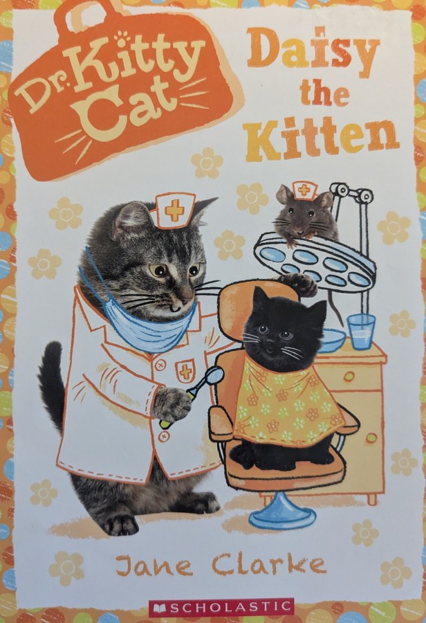 Dr. Kitty Cat and her trusted mouse assistant problem solve as they discern what is going on with various cuddly creatures. In addition to the book pictured here, Dr. Kitty Cat: Daisy the Kitten, I also have reviews for Dr. Kitty Cat: Clover the Bunny and Dr. Kitty Cat: Posy the Puppy.